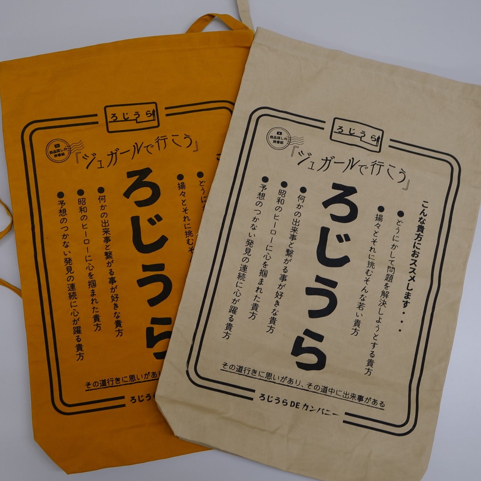 サンドベージュとマスタードの2色展開で、表面には乗鞍印さんのネームタグ、裏面にはろじうらについてシルクスクリーンでプリントされています。