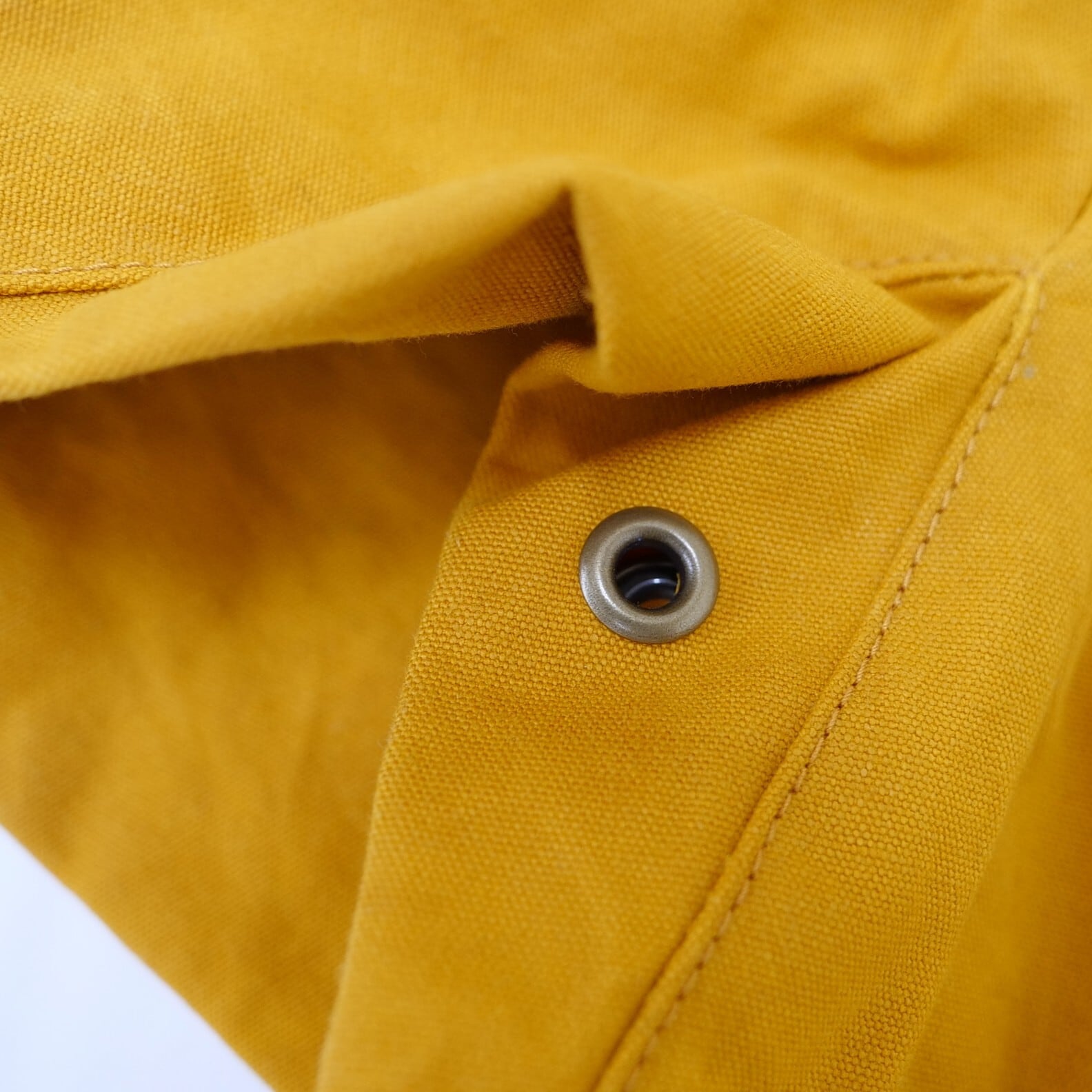 ・洗う事により蝋が落ち撥水性やハリ感が失われますが、蝋引きをおこなうことで復元できます。→市販のキャンバス用固形ワックスや蜜蝋・パラフィンワックスなどを塗りこんでドライヤーや低温アイロンなどでワックスを生地に浸透させ、ワックスが透明になったら固まるまで数分間放置します。