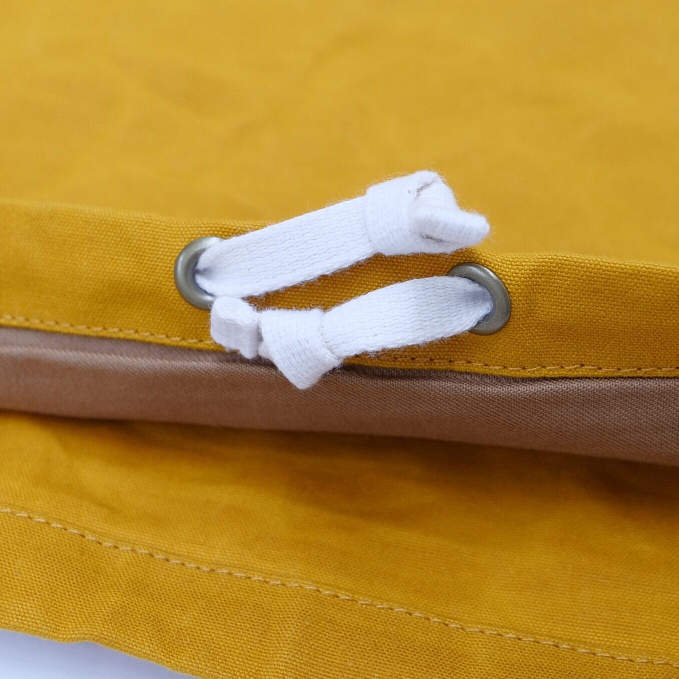 ・汚れが目立つようになったら手洗いで汚れを落とします。加工している蝋が落ちることで他の洗濯物への付着、洗濯槽へのこびりつき、また排水口の目詰まりなどの原因となりますので、洗濯機の使用はおすすめしません。