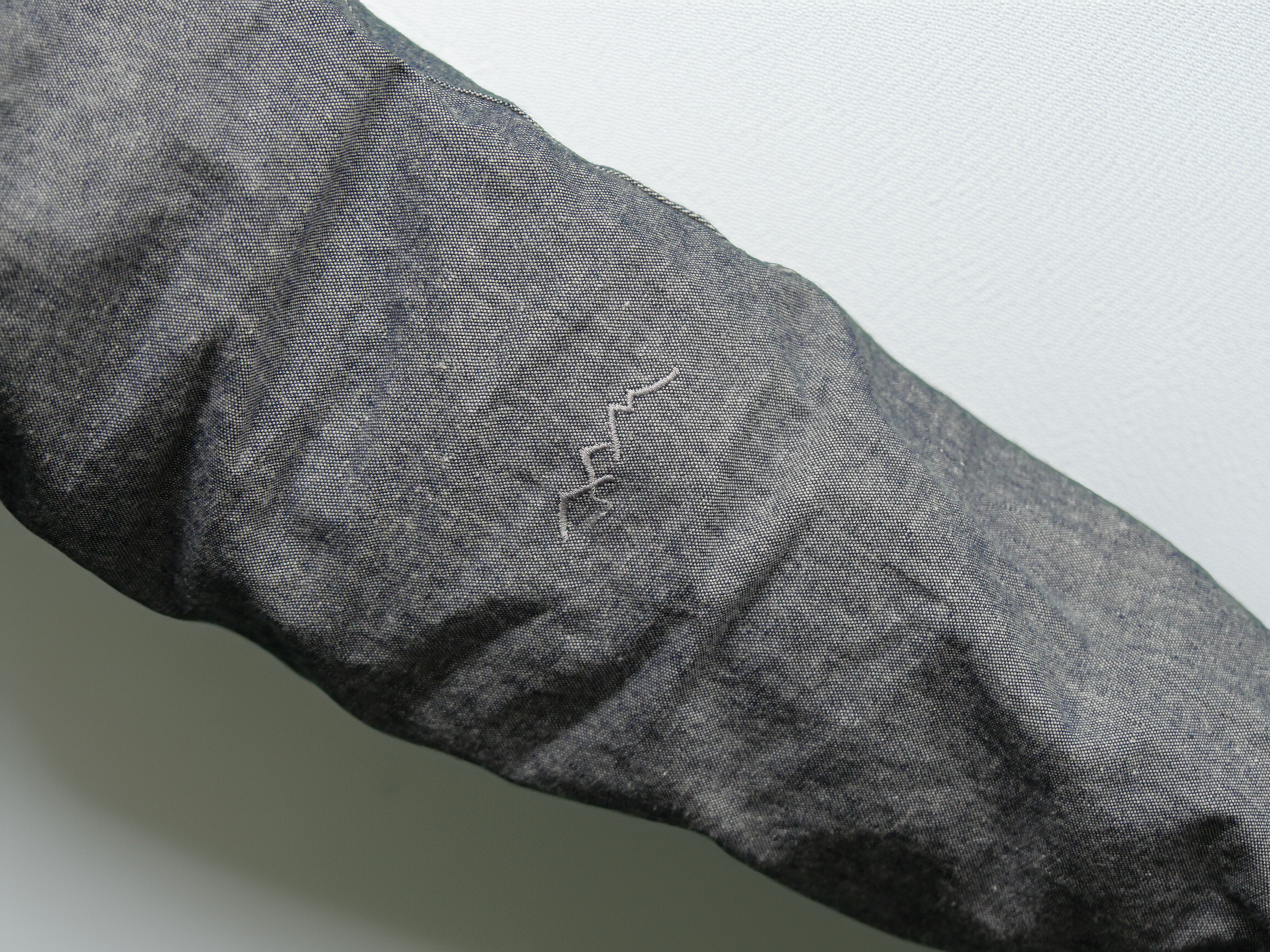 首元内側にはmokusiroと乘鞍印、それぞれのタグを配し、両者のものづくりの姿勢をさりげなく刻んでいます。