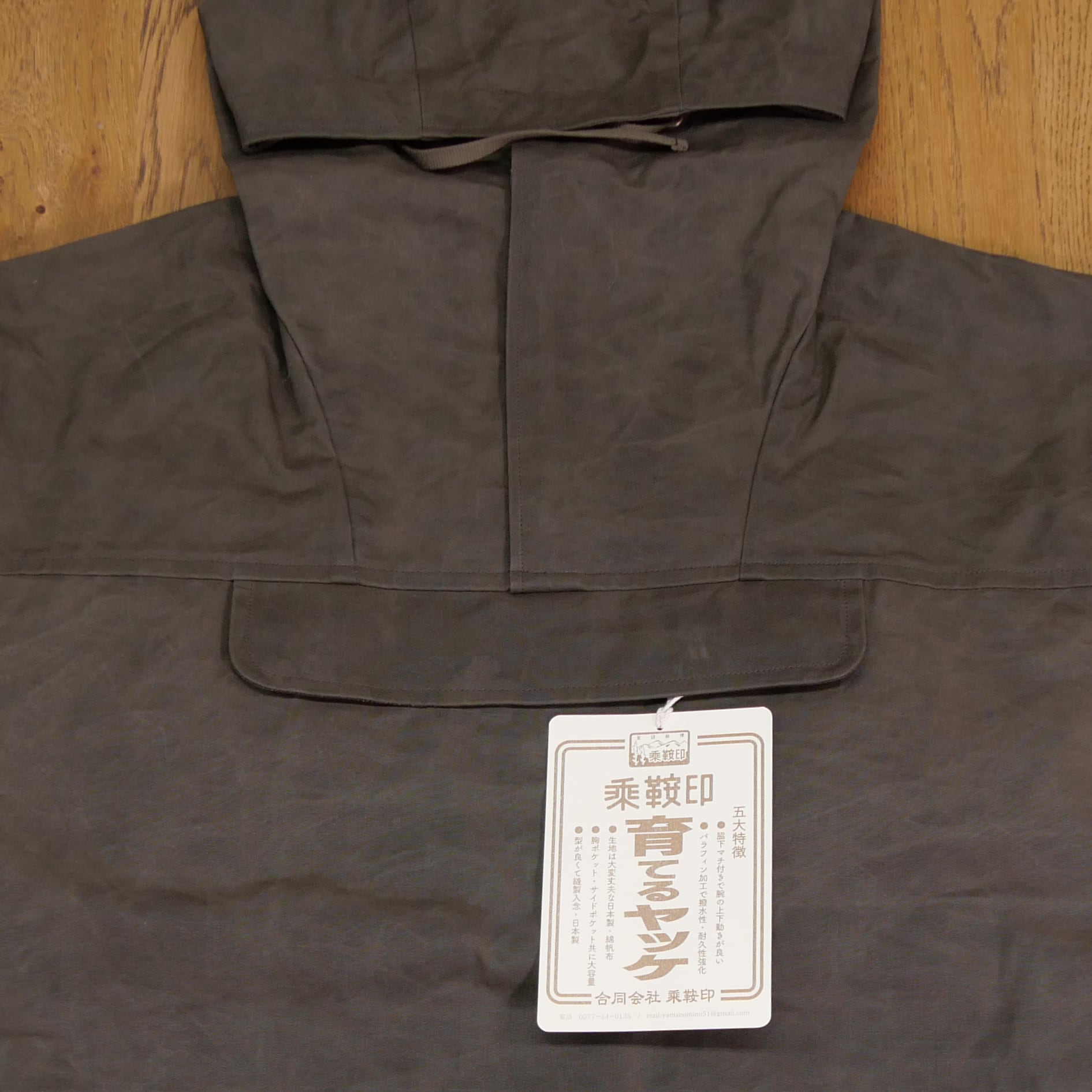 乗鞍印「育てるヤッケ」は、丈夫で撥水性のある帆布 (綿100%) を使用したプルオーバージャケットです。作業着や防寒着など幅広く使える生活の道具のような服をイメージされています。パラフィン加工が施されているので雨や水からしっかりと身を守り、さまざまなシーンで活躍すること間違いなし!